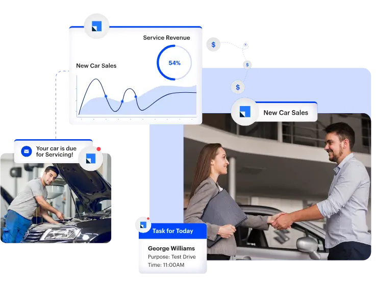 CRM in automotive industry refers to managing interactions and building strong relationships with vehicle buyers and sellers. Automotive CRM helps you streamline sales and dealership operations and aligns your teams and processes to bring in more revenue.